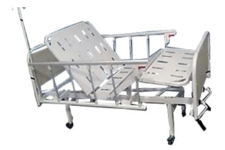 Fabricada en tubería cold rolled Tendido lámina troquelada Acabado pintura en polvo electrostática Ruedas en poliuretano de 2.5" con freno para facilitar su movilidad y transporte, Sistema manual de espaldar y piecero por medio de manivela Baranda plegable de aluminio que cubren el 80% del paciente Cabecero y piecero en metal madera Altura fija de 45 cm Medidas útiles 90 cm ancho x 1.90 de largo Capacidad de carga 220 Kilos. Peso 48 K. Accesorios :Atril