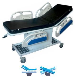 Fabricada en tubería cold rolled Acabado pintura en polvo electrostática Tendido lámina cold rolled Ruedas en poliuretano de 5" con freno de lujo para facilitar su movilidad y transporte Barandas retractiles con sistema de pistón, fabricadas en plástico ABS Movimientos: Posición recta y Levantamiento espaldar por medio de manivela Colchoneta de 10 cm, tapizado sintético tipo cuero con espuma densidad 26 Medidas útiles 80 cm de alto x 67 cm de ancho x 2 mt de largo Capacidad de carga 220 kilos