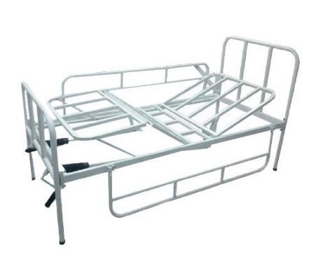Fabricada en tuberia cold rolled Tendido tubería cold rolled Acabado pintura en polvo electrostática Botas antideslizantes Sistema manual de espaldar y piecero por medio de manivela Baranda tubular cubrimiento del 80% del paciente Altura fija de 55 cm Medidas útiles 90 cm ancho x 1.90 cm de largo Capacidad carga 220 Kilos Accesorios :Atril