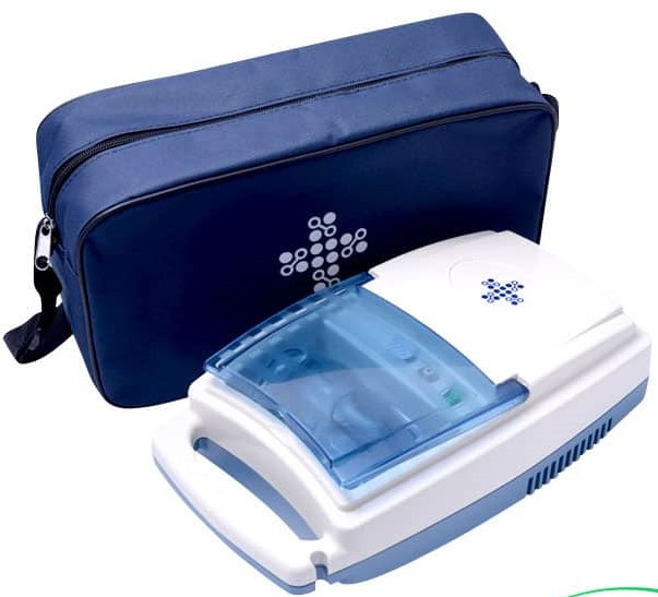 Dispositivo Médico portátil de uso profesional, diseñado para suministrar eficientemente la medicación prescrita a las vías bronquiales de los pulmones. Este equipo crea un flujo de aire que viaja a través de un tubo transparente al nebulizador. Cuando el aire ingresa al nebulizador, este convertirá la medicación prescrita en una nube para una fácil inhalación. Está desarrollado para el tratamiento exitoso del asma, alergias y otras enfermedades respiratorias.